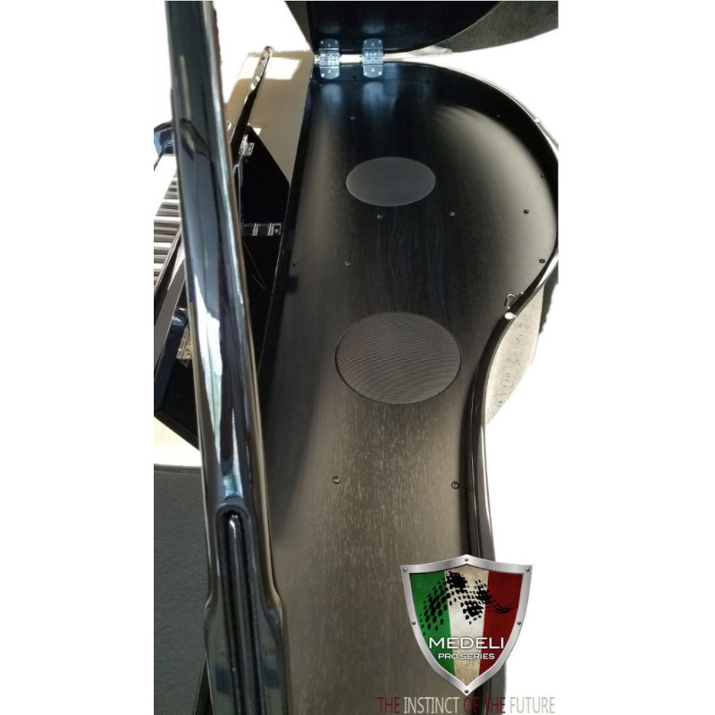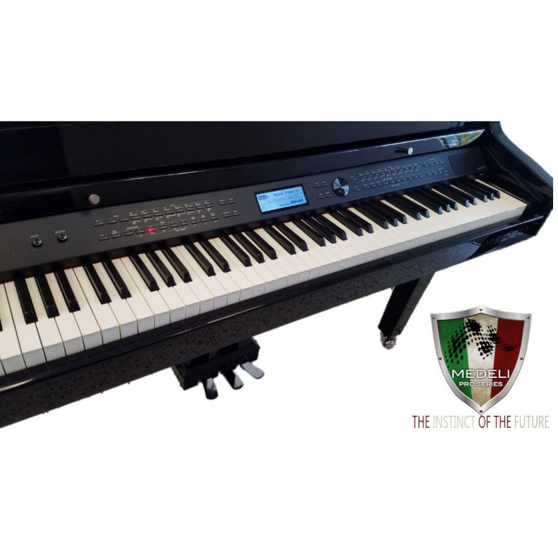 Medeli Baby Grand510 digitalni klavir nudi veliki zvuk i savršen dodir. Koristeći Medeli-ov A5 procesor, Grand510 je opremljen sa 256 polifonih melodija i zadivljujućom novom bibliotekom zvuka od 1200 glasova, 270 stilova u ponudi će vas odvesti do novih muzičkih horizonata, nudeći vam zvuk od džeza velikih bendova 50-ih do najsavremenijih stilova. Dirke su prekrivene slonovačom, nudeći konfiguraciju sa 3 senzora, gde će se note tačno detektovati čak i bez potpunog otpuštanja. Konačno, mogućnost lakog deljenja muzike je jedan od ključnih aspekata koji svaki muzičar želi, sa Grand510, možete snimati i reprodukovati u MP3 formatu, čuvati muziku na ogromnom eksternom USB disku i takođe bežično prenositi muziku na svoj telefon preko bluetooth-a.Njegov USB audio priključak omogućava povezivanje sa bilo kojim računarom, tabletom ili mobilnim uređajem,kako bi se Grand510 transformisao u kućni stereo uređaj,reprodukujuć vašu omiljenu muziku sa vašeg uređaja.