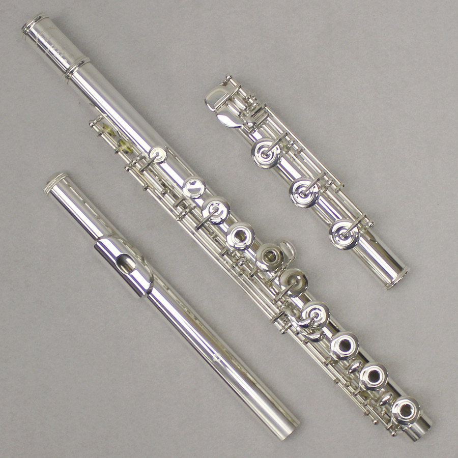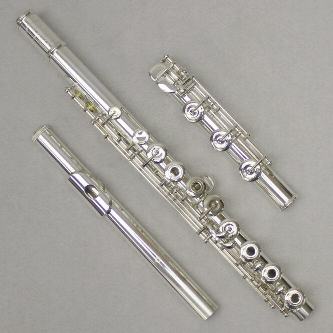 Ručno pravljena flauta od čistog srebra Muramatsu DS model RCEO. Otvorene rupe, Ofset G mehanika i E mehanizam.