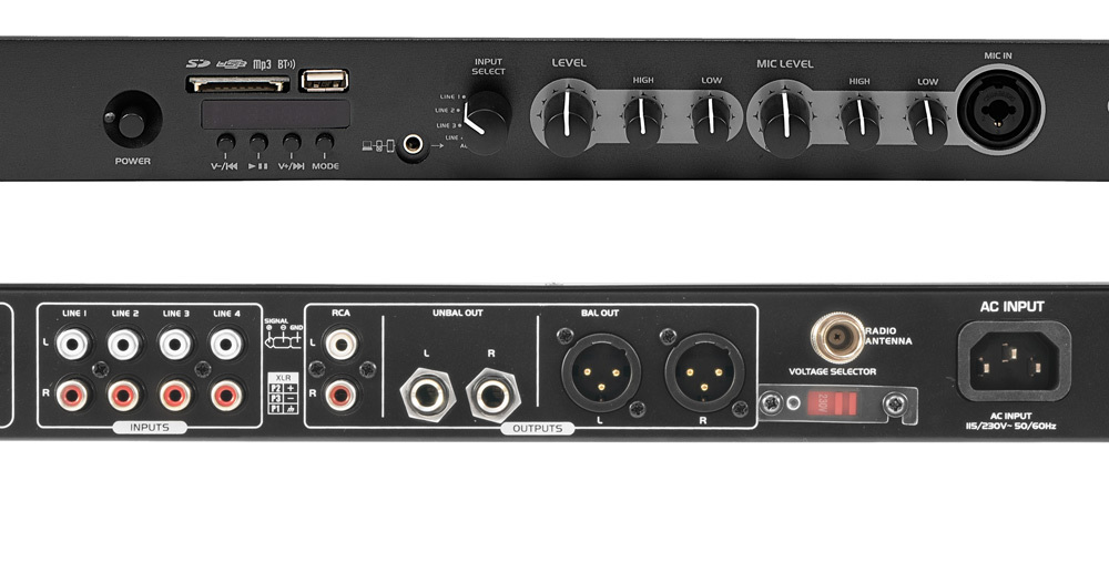 • 1 microphone input with controls for volume, bass and treble on the front panel