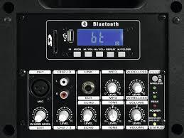 recharging time 4hWoofer: (6.5″) approx. 17 cm Tweeter: (1″) ca. 2,5 cm Frequency band: UHF 863 – 865 MHz Frequency range: 62 – 18000 Hz Power connection: Battery/battery pack (not included) Mains input IEC connector (M) mounting version Power supply cord with safety plug (provided) Color: Black Output power: 40 W RMS Carrier frequency: 865 MHz Width: 23,5 cm Height: 34,8 cm Depth: 21,8 cm Weight: 4,15 kg Audio player Frequency band: 2.4 GHz Control: Bluetooth built-in IR remote control included Audio player: USB + SD + Bluetooth Range: 10 m Bluetooth Microphone Polar pattern: Cardioid Battery: 2 x Mignon (AA) (not included) Power connection: Battery/battery pack Capsule type: Dynamic Range: 30 m Material: Plastic Length: 26 cm Diameter: 4 cm Weight: 0,115 kg Remote control Power supply: 3 V DC Battery: 1 x Button cell 3.0 V CR2025 lithium manganese built-in Range: 10 m Inputs: mic (XLR), line (stereo RCA) Output: line (6.3 mm jack) T.H.D.: Audio player: Bluetooth, USB devices and SD(HC) cards Wireless microphone: Frequency stability: ±0.005 % RF power output: 10 mW