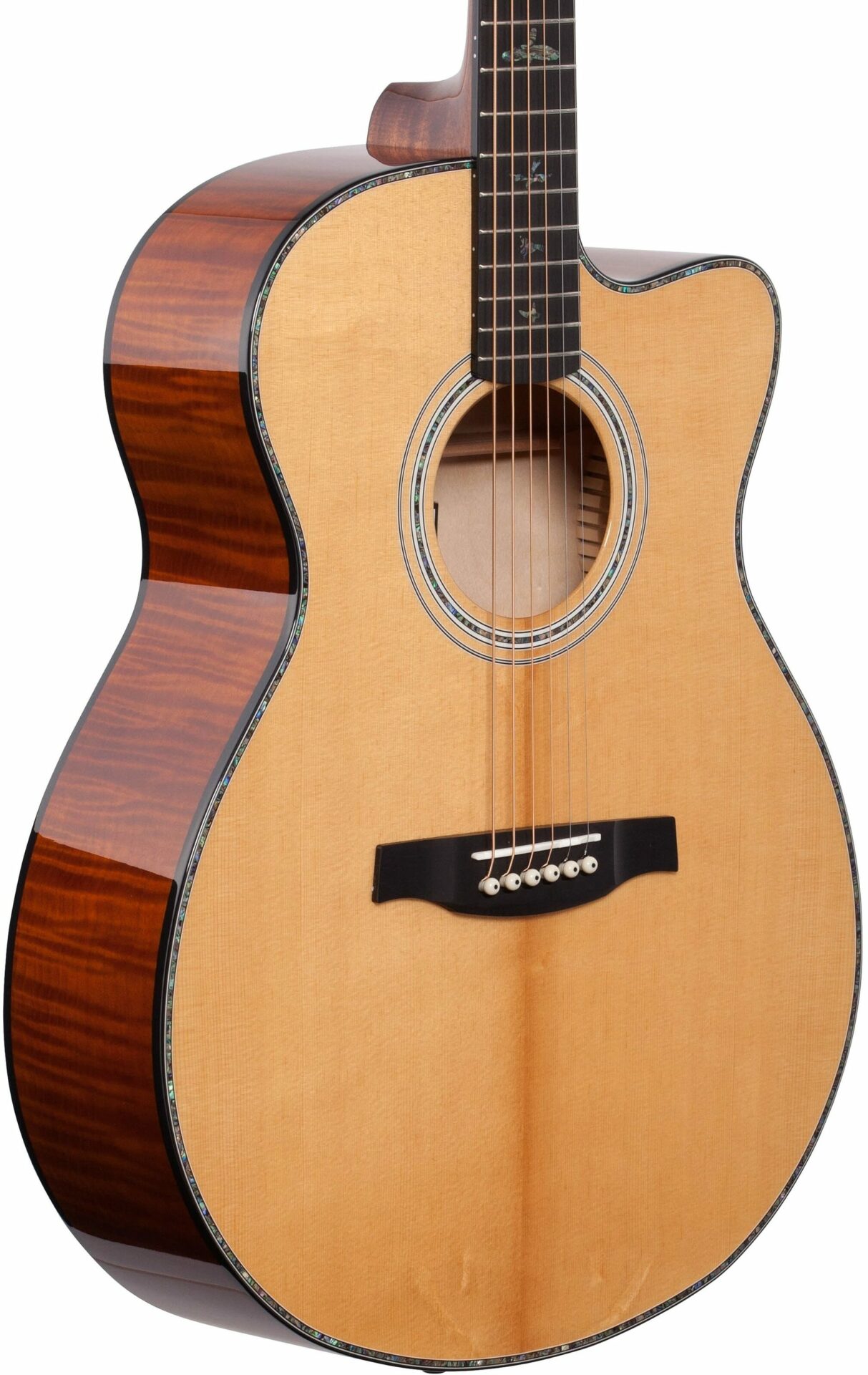 Model PRS SE A60E Cutaway Electric-Acoustic Guitar Builder PRS SE Year 2020 Body Type Angelus Cutaway Top Wood Beveled Maple with Quilted Maple Veneer Body Wood Mahogany Finish Type Gloss Finish Color Natural Binding Flame Maple Binding Neck Wood Mahogany Fingerboard Ebony Neck Carve Wide Fat Scale Length 25.3” Neck Radius 11.81″ Frets 20 Nut Width 1 11/16″ Neck Finish Gloss Inlays Abalone Birds Bridge Pickup Fishman GT1 Bridge Ebony Bridge Tuners PRS-Designed Controls Volume / Tone Case PRS Hardshell Case Zemlja porekla: SAD