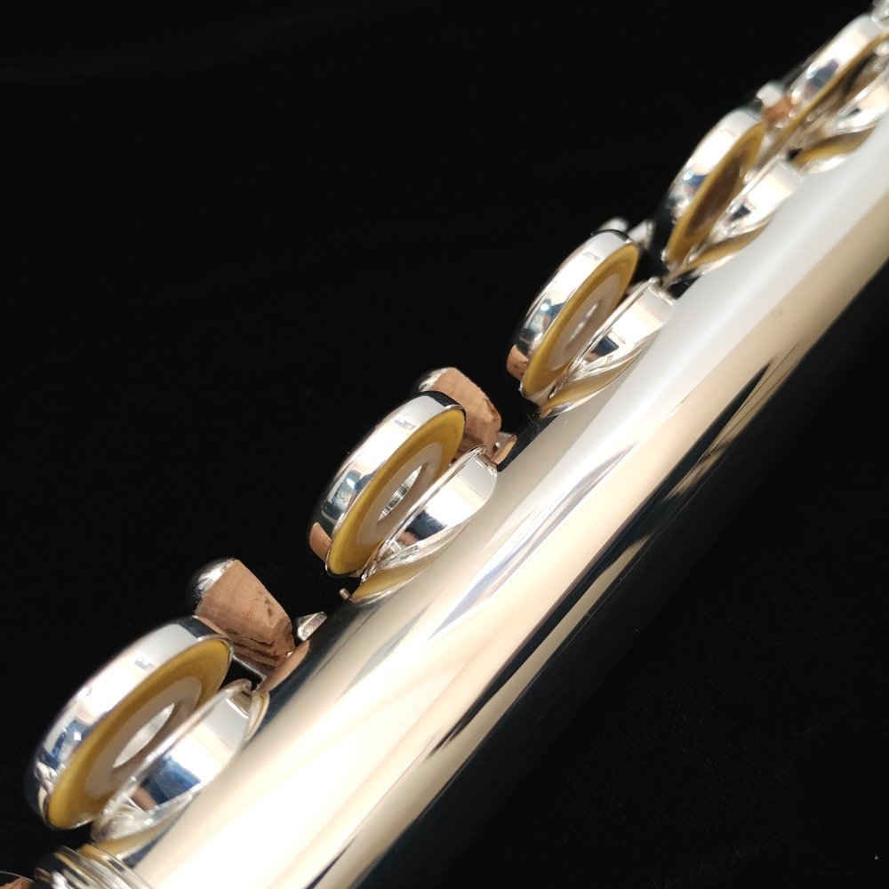 With French Pointed Arms, this model is available with Offset or In-line G Keys, B or C foot joints, Split-E mechanism or C# Trill (Offset flutes only). Customize the headjoint with an Aurumite 9K Lip Plate (K Style) or complete Aurumite 9K Tube and Lip Plate (KT Style). This model also features the feel of a professional flute with 10K White Gold Springs.