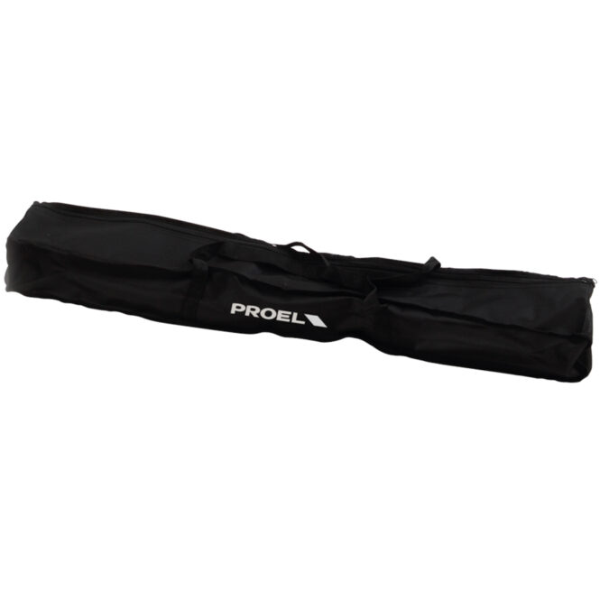 Proel PRMSBAG01 je čvrsta najlonska 600D torba za jedan stalak za mikrofon. Ima metalni patent zatvarač i dve bočne ručke za lakši transport. Dolazi u crnoj boji i ima unutrašnje dimenzije 1050 x 110 x 110 mm