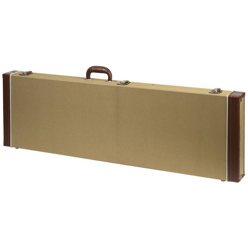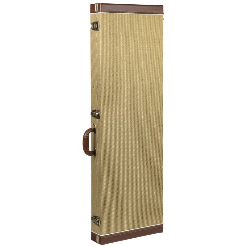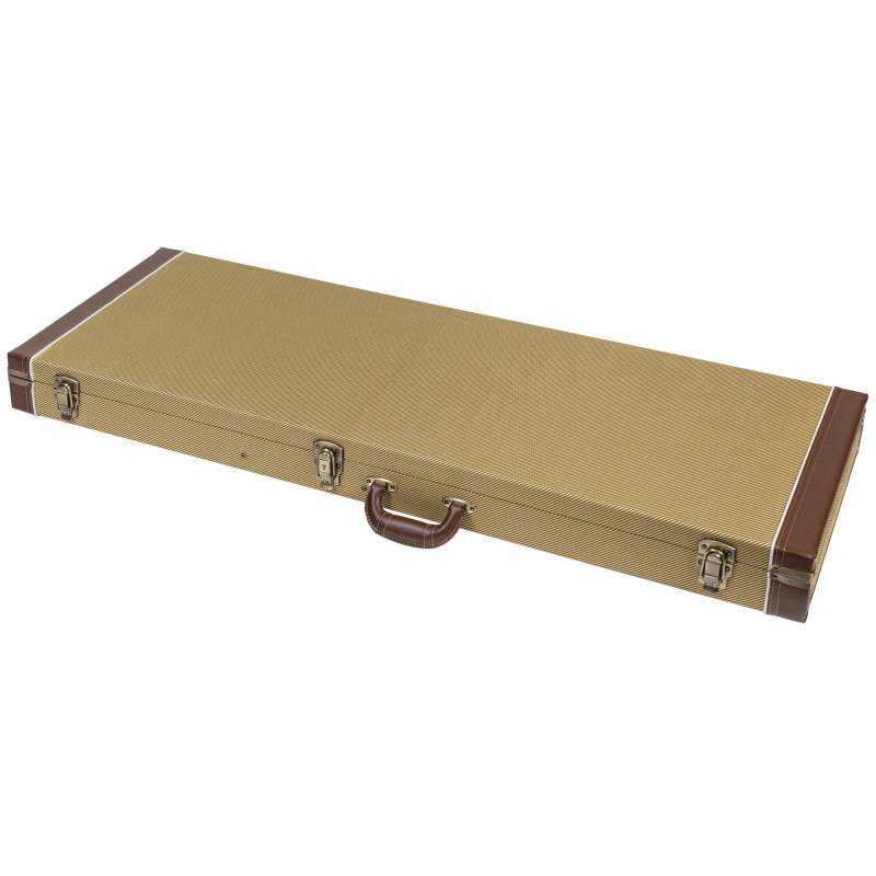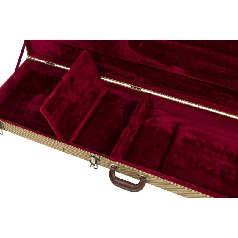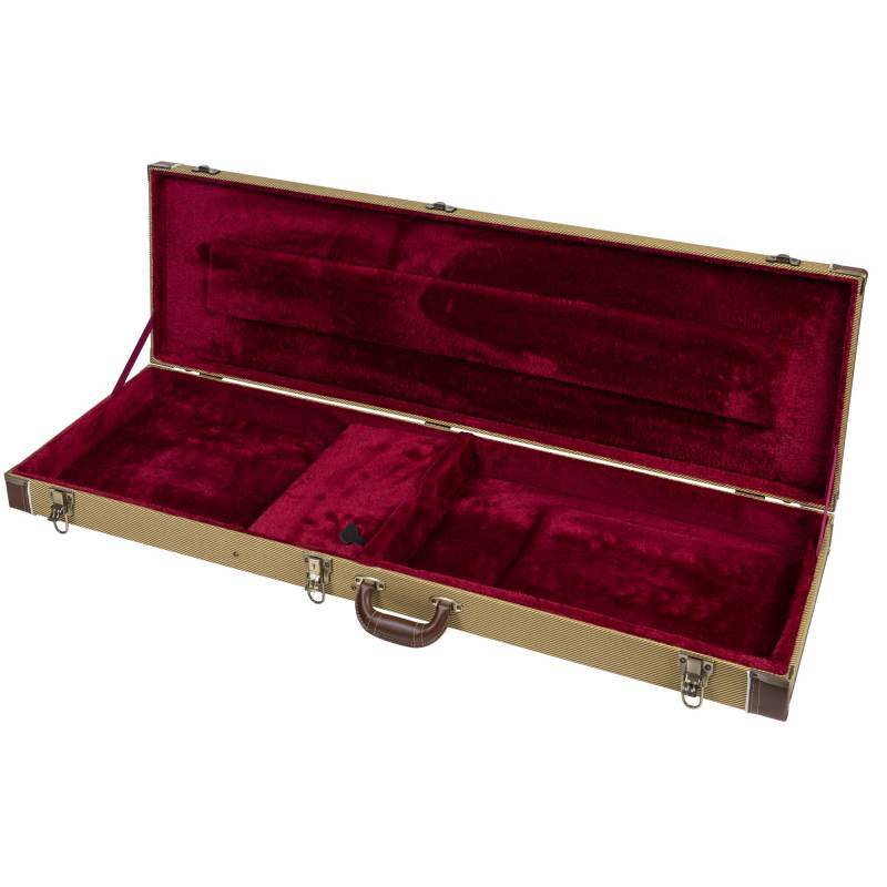 Pravougaoni drveni kofer za električnu gitaru sa vintage tkaninom i unutrašnjom postavom od mekog bordo somota.