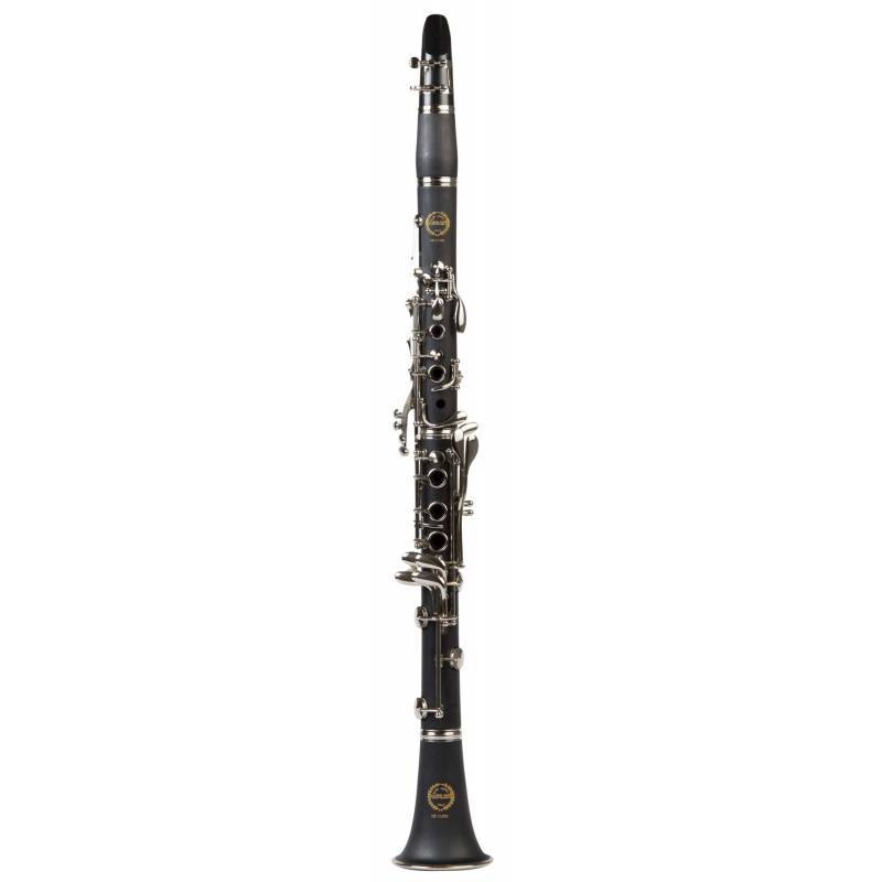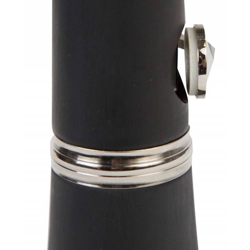 NOVI srednji Bb klarinet. Telo napravljeno od ABS komponenti, sa Boem sistemom, 17 ključeva, 6 prstenova, dve tačke za ključeve, sintetički jastučići, jastučić od plute za registarski ključ, niklovani ključevi, 2 cevi: 62 i 65 mm, podesivi oslonac za prst. Kućište kofera je izrađeno od pene. Klarinet dolazi sa priborom, usnik sa obrnutom ligaturom i poklopcem, mast od plute, krpa za održavanje instrumenta.