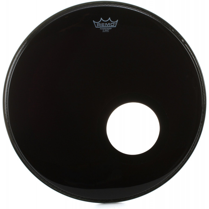 Remo 18 Powerstroke 3 Ebony w/hole P3 1018-ES-DM