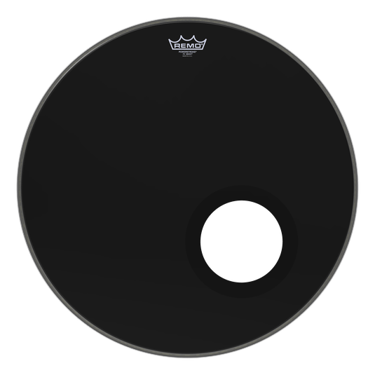 The Powerstroke® P3 Ebony® 5″ Black DynamO features midrange and low end resonant tones with a pre-cut 5″ hole with a DynamO reinforcement ring installed. Constructed with 1-ply 10-mil Ebony® film with a 10-mil inlay ring and 5″ Black DynamO, the Powerstroke® P3 Ebony® drumhead provides a perfect balance of mid and low tones that has made Powerstroke® Ebony® of Remo’s most popular resonant Bass drumheads.