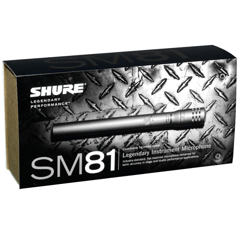 The Shure SM81 is a high-quality, unidirectional condenser microphone designed for studio recording, broadcasting, and sound reinforcement. Its wide frequency response, low noise characteristics, and low RF susceptibility have made it a standard for applications involving acoustic instruments, especially guitar, piano, and cymbals.