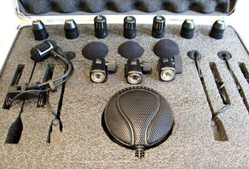 Set od 8 mikrofona za ozvučavanje bubnja. Različite vrste kondenzatorkih kapsula u zavisnosti koji deo bubnja se ozvučava.