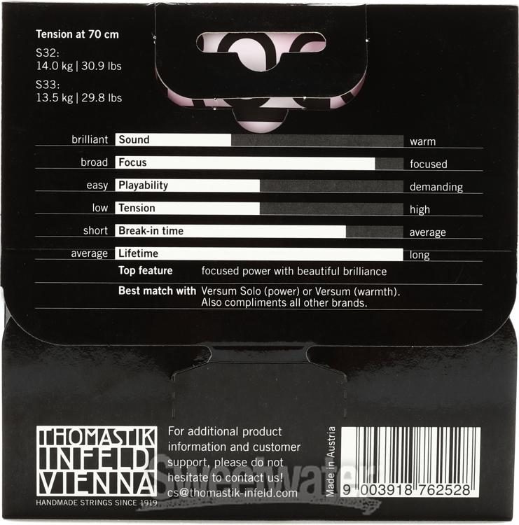 - 2 strings: G-S32 (tungsten-wound, spiral core); C-S33 (tungsten-sound, spiral core)