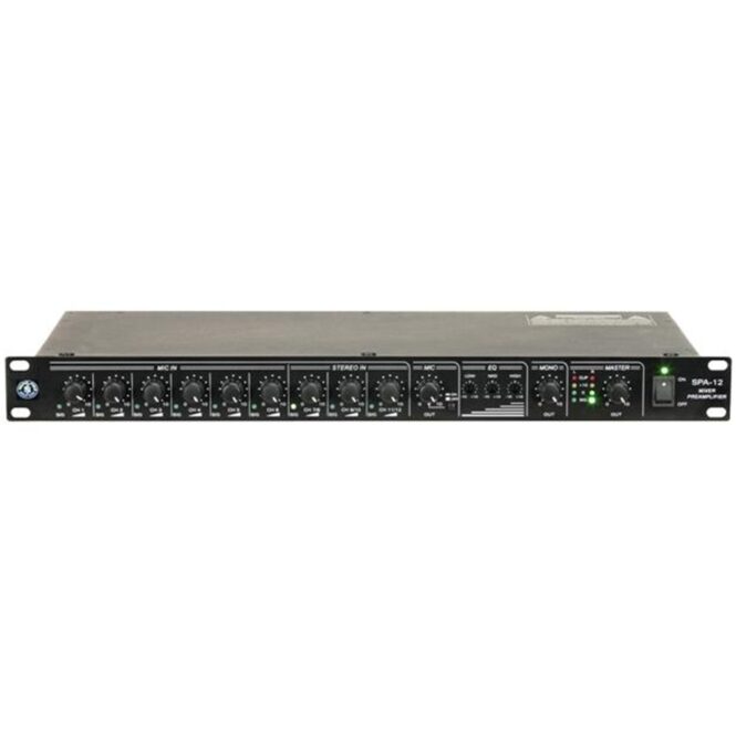 TOPP PRO SPA12 Pasivni analogni mikser za montažu u rek stalak, kompaktni profesionalni mikser sa 6 MIC/Line ulaza + 3 stereo RCA ulaza. Dizajniran je da se dobije što linearniji i prirodniji zvuk. Idealan za fiksne instalacije, u malim studijima ili za miksovanje uživo.