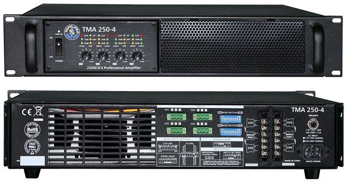 TOPP PRO TMA 250 je 4-kanalno pojačalo koje na stereo režimu na 8 ohma izbacuje 145w po kanalu, a na režimu od 4ohma snaga koja izlazi je 220w po kanalu. Ovaj pojačivač je interesantan po svojoj snazi i mogućnosti povezivanja više zvučnika u jednom objektu. Lokali sa više prostorija, kafići sa više zvučnika, bašte restorana, monitoring na bini i mnogo toga još.