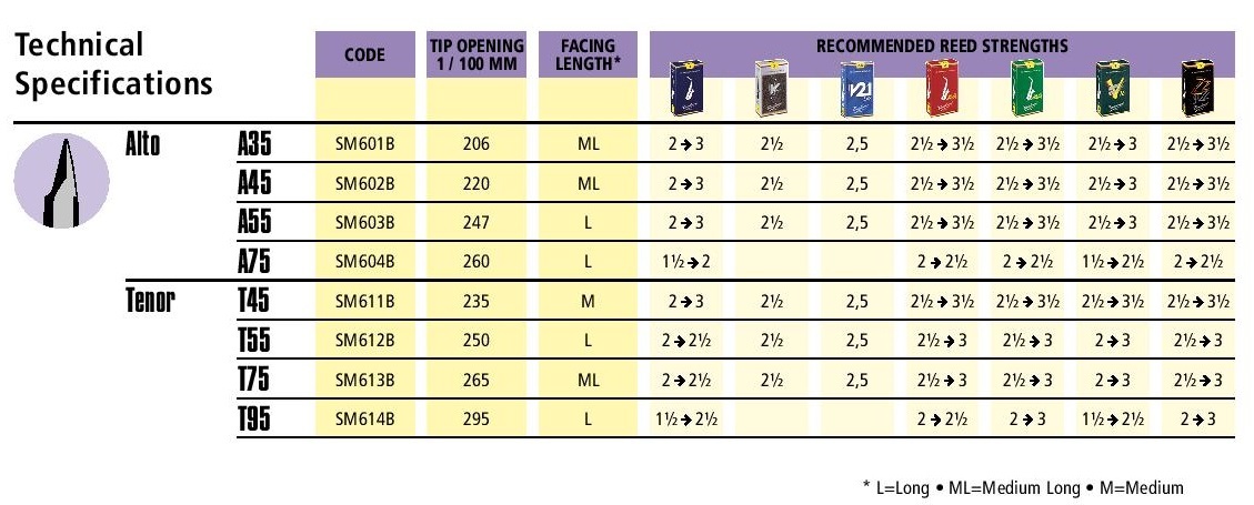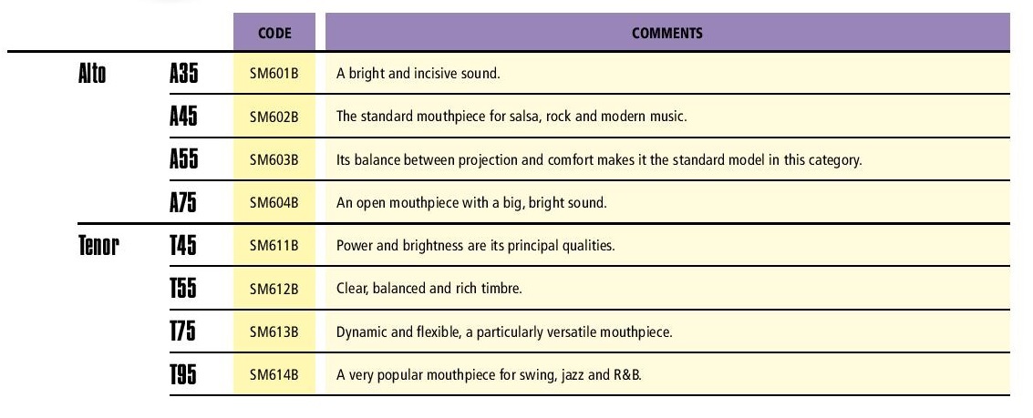 VANDOREN proizvodi usnike za alt saksofon u 6 različitih serija: