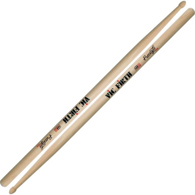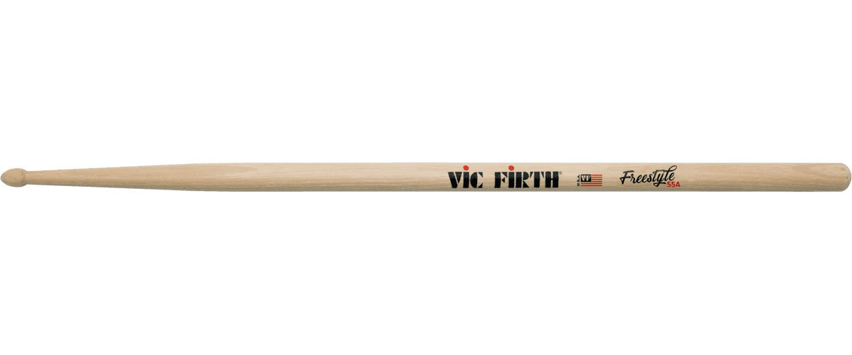 55A with extra-long 17″ length and extra long taper, expanding the drummer’s fulcrum area for a wide array of responses and feels. Freestyle is a new series of sticks from Vic Firth that draws inspiration from the dynamic world of freestyle longboard skateboards. For freestyle riders, it’s about expression, flow, and style. They have the versatility to move up and down the board without losing control, using every inch of their deck. Vic’s Freestyle series of drumsticks combine a massive overall length of 17” with extra long tapers. This combination of length and taper length more than doubles the area where a drummer can place their fulcrum – offering a humongous array of responses and feels out of the same pair of sticks.- Diam. – .585″