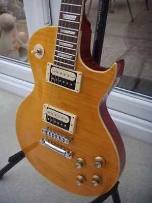 Vintage V100 AFD Amber Flamed je električna gitara koja pleni sjajnim izgledom, izuzetnom udobnošću sviranja i kvalitetnim tonom koji izlazi iz pažljivo biranog hardvera.