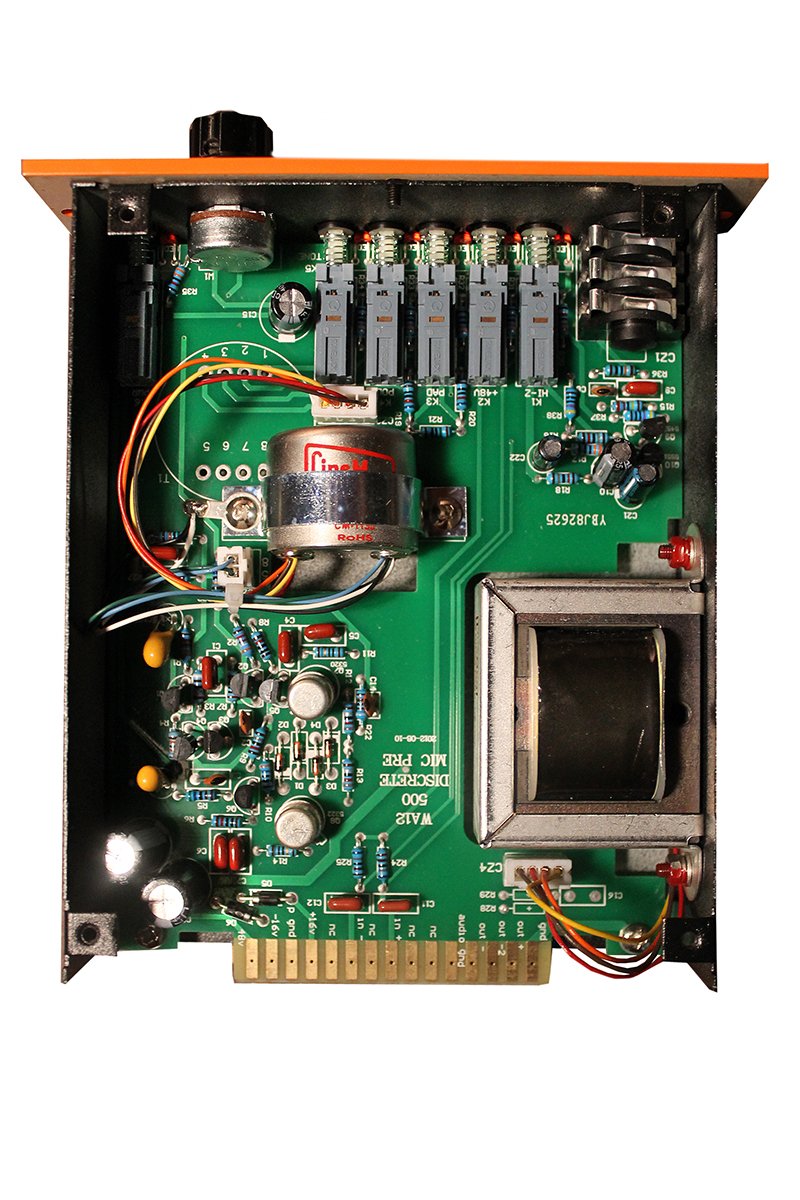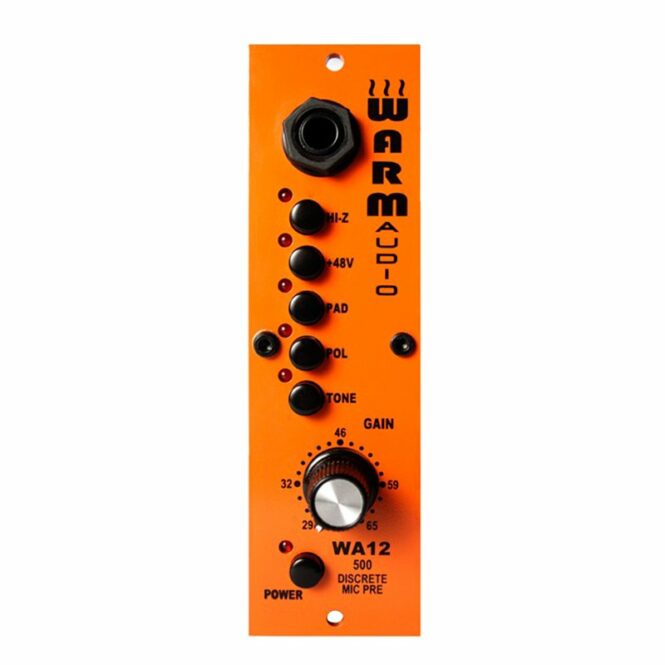 The hot Audio WA12-500 is a discrete, single-channel microphone and instrument preamplifier in 500 format. He is with Cinemag input and output transformersequipped (Made in USA), which provide in hi-end devices like the Presonus ADL-700, A-Designs Pacifica or Universal Audio LA-610 for the sound. The up to 71dB gain preamp delivered module is equipped with 48V phantom power, a phase switch and a 20dB pad. In addition, it features a TONE switch that lowers the input impedance of 600 Ohm to 150ohm and thus enables a significant change in the sounds. Furthermore a high-impedance instrument input is available, which is provided at the front as a jack input.